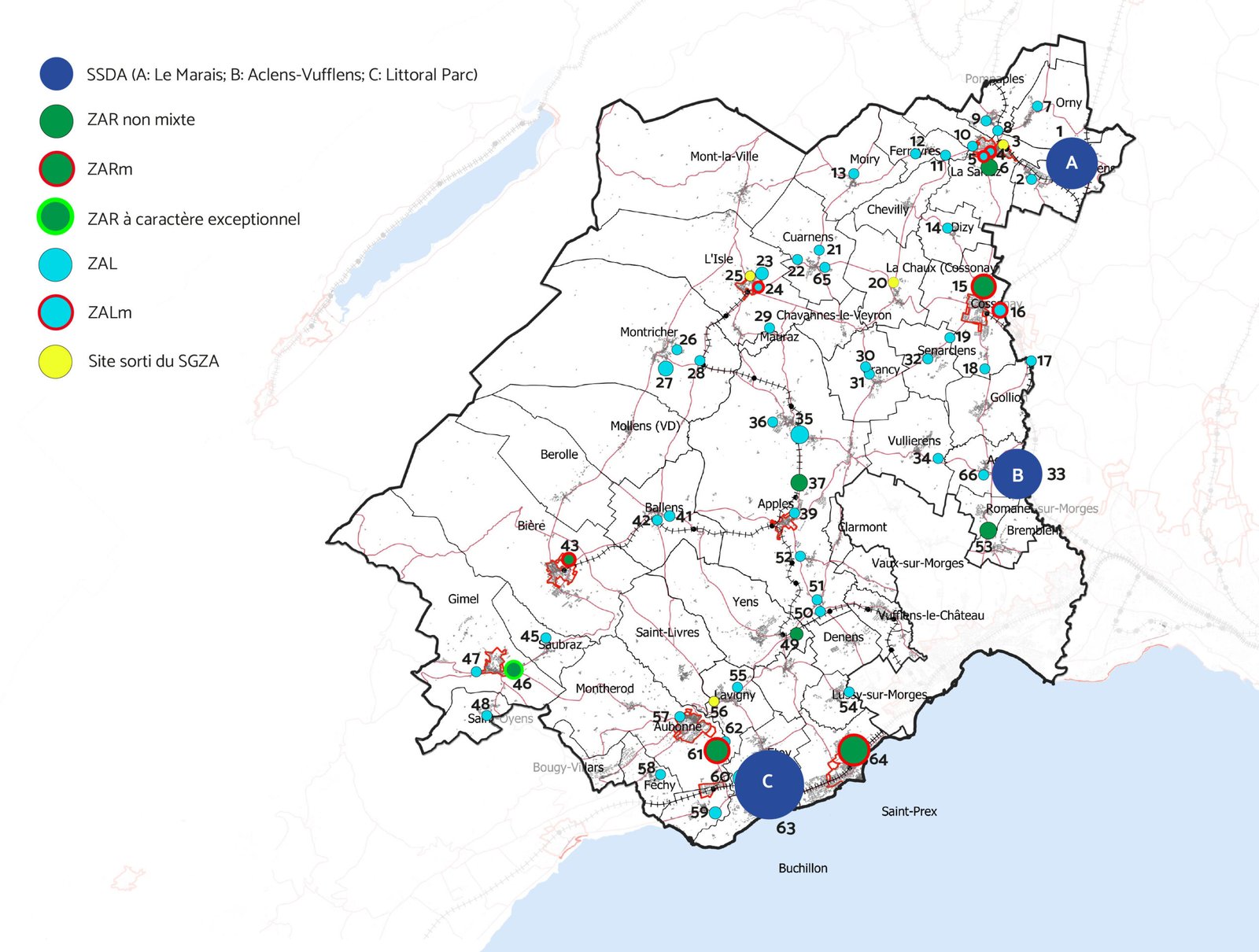L’ARCAM coordonne la stratégie régionale de gestion des zones d’activités (SRGZA) pour une partie du district de Morges (48 communes sur 56), à l’exception des communes de l’agglomération Lausanne-Morges (8).