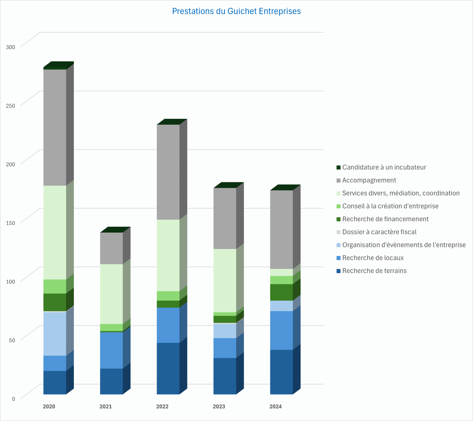 En 2024, l’ARCAM a soutenu 124 entreprises en leur délivrant 174 prestations, principalement dans le domaine de l’accompagnement (39%) et la recherche de terrains et locaux (41%).